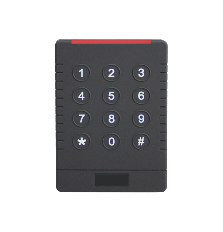感應(yīng)式CPU讀卡器,支持ISO14443A協(xié)議的上海復(fù)旦CPU卡(FM1208)。用戶可自定義加密密鑰對卡片數(shù)據(jù)加密(配合“密管系統(tǒng)”軟件),滿足高保安要求。帶鍵盤的讀卡器,鍵盤信號輸出也可由用戶靈活設(shè)置輸出格式。